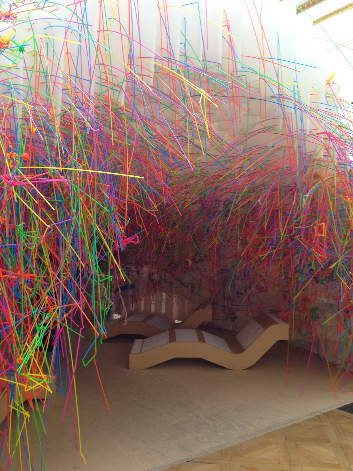 Pezo von Ellrichshausen, beautiful RA doorway and a glimpse of the playful installation by Diébédo Francis Kéré. |