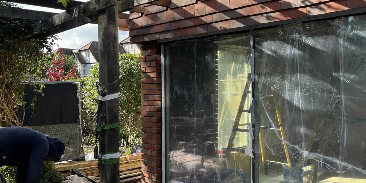After nearly a year of work on site, our project involving remodel and deep retrofit of a detached house in Barnes is starting to take on its shape. Despite the presence of multiple tools of trade and various protections it is possible to glimpse our original design idea to enable views right through the long building, straight from the front door