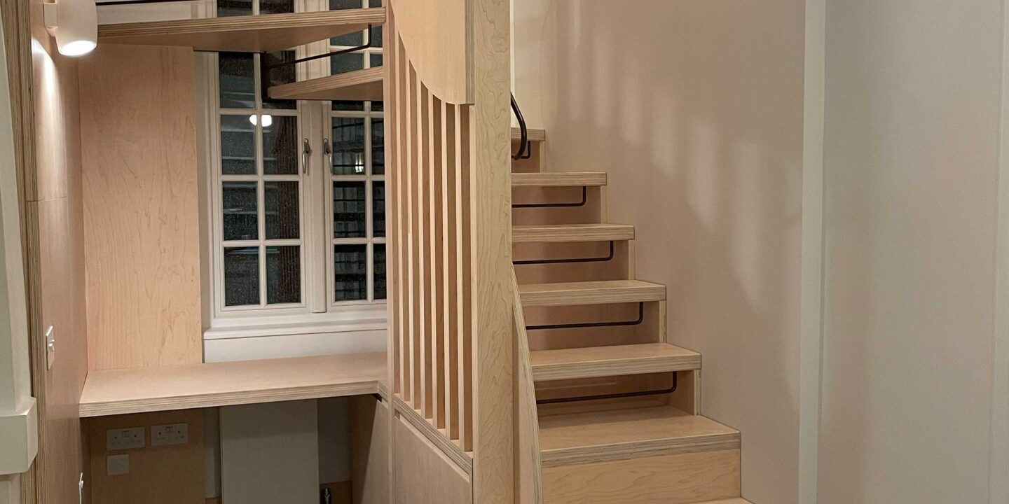 The story of this ply staircase-cum-study nook for a Listed Building in Hampstead took over 18 months to unfold. Here is a much quicker version that captures the most significant milestones. Looks so easy, the cat hasn’t even noticed.