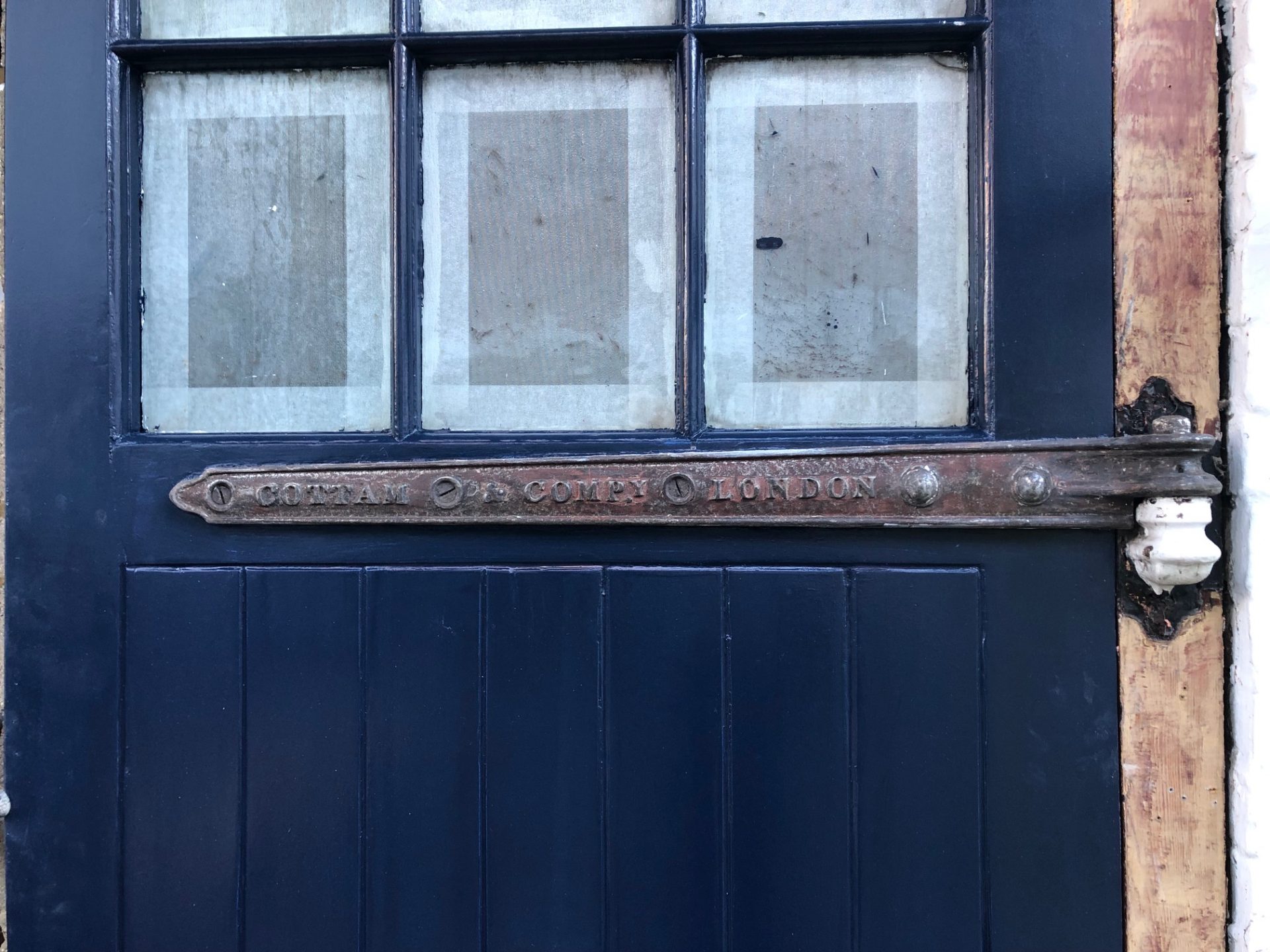 Old door, new door, old hinge, new hinge.