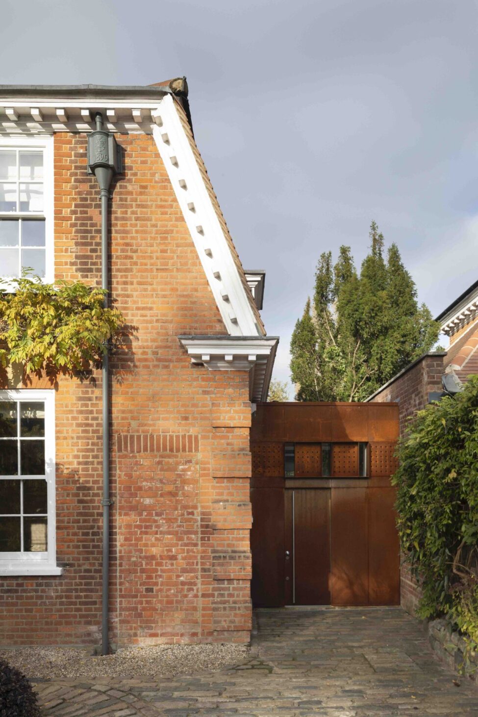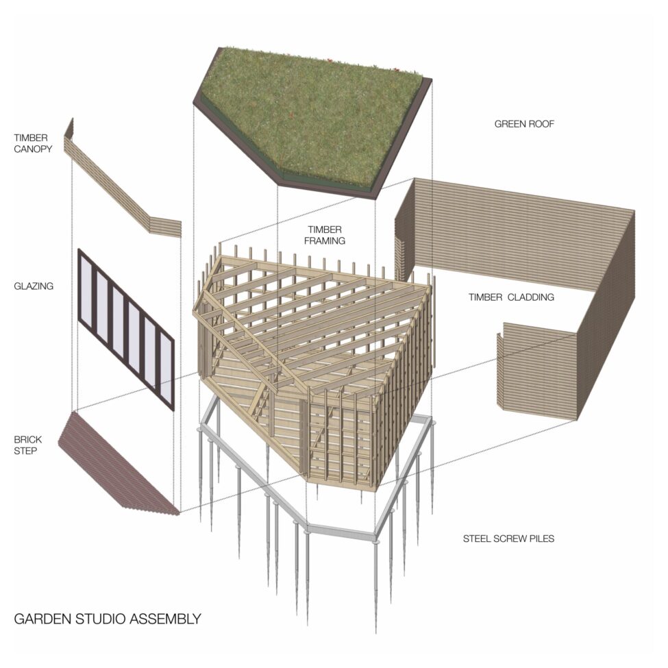 To genuinely and sustainably future-proof this heritage asset, we finally designed two low-carbon projects. We replaced all reliance on fossil fuel with clean on-site generated energy, installing solar-thermal and air-source heat pump systems. We placed the necessary equipment in the purpose-designed timber-framed and corten-clad infill between the house and the next-door neighbour, freeing up additional space within the main building. As working from home has increasingly become a possibility for many post-2020, we added a light-weight timber and lime plaster studio at the far end of the garden, creating a truly self-sufficient heritage environment of the future.