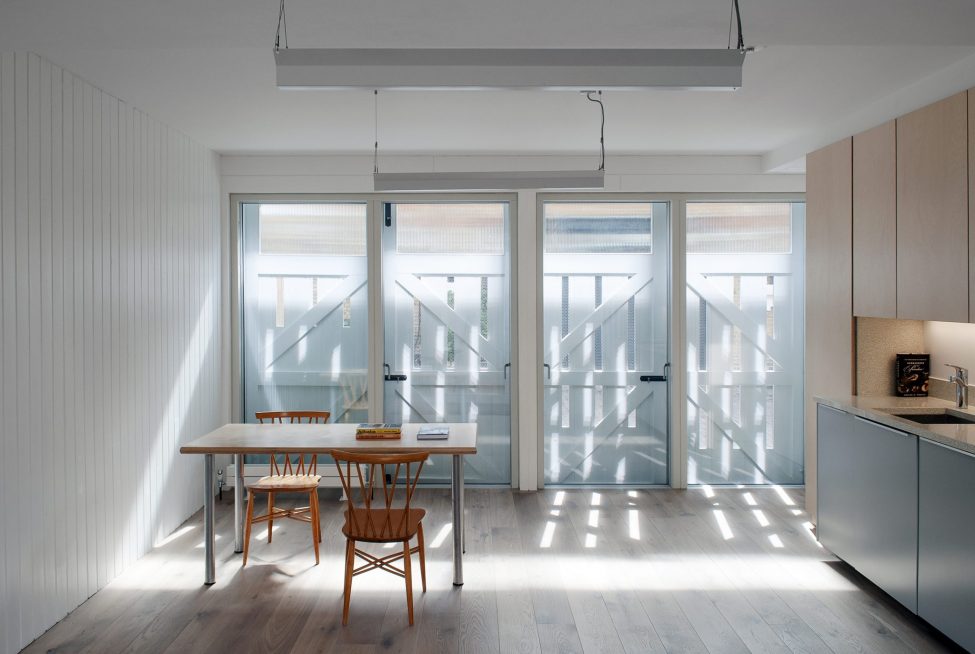 The small footprint is matched by a small developmental impact, a new building has been reassembled from the old parts of the original building. The walls have been augmented with breathable insulation and the roof has been decked out with solar cells. The new rear extensions are timber-framed, fully-insulated and bright-zinc-clad – a memento to the building’s utilitarian past.