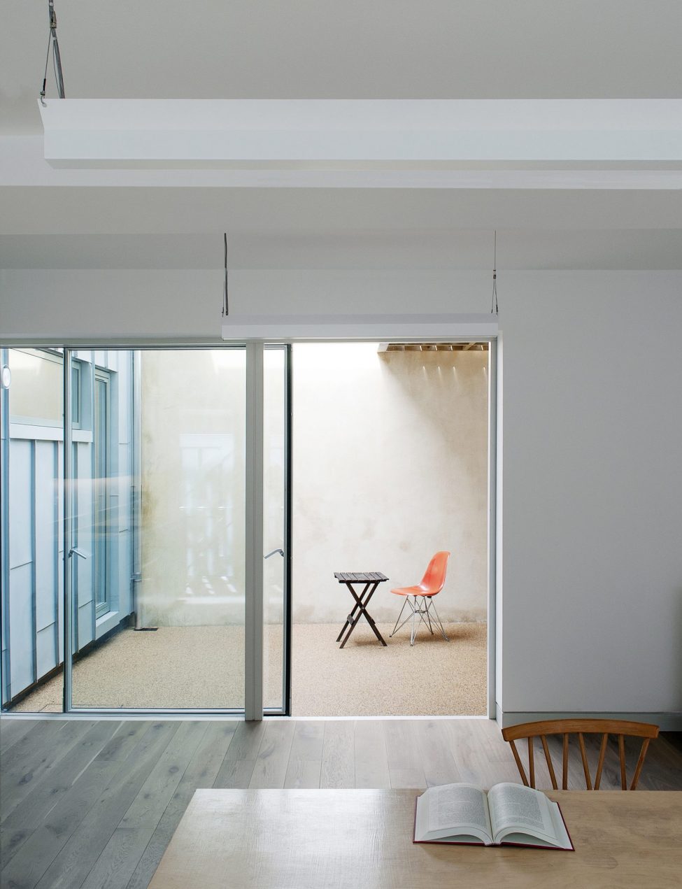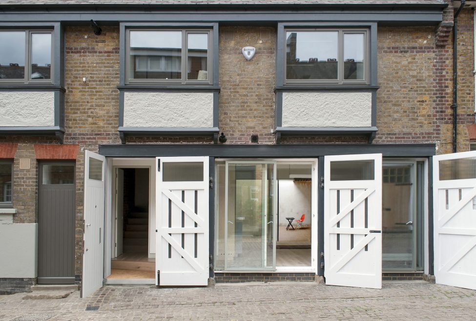 Retained are the garage doors, humble facade and charming features of this diminutive former stables and former garage but gone is the sense of enclosure. A new full height slice of sky has been carved out of the volume to bring light and air into the whole building.