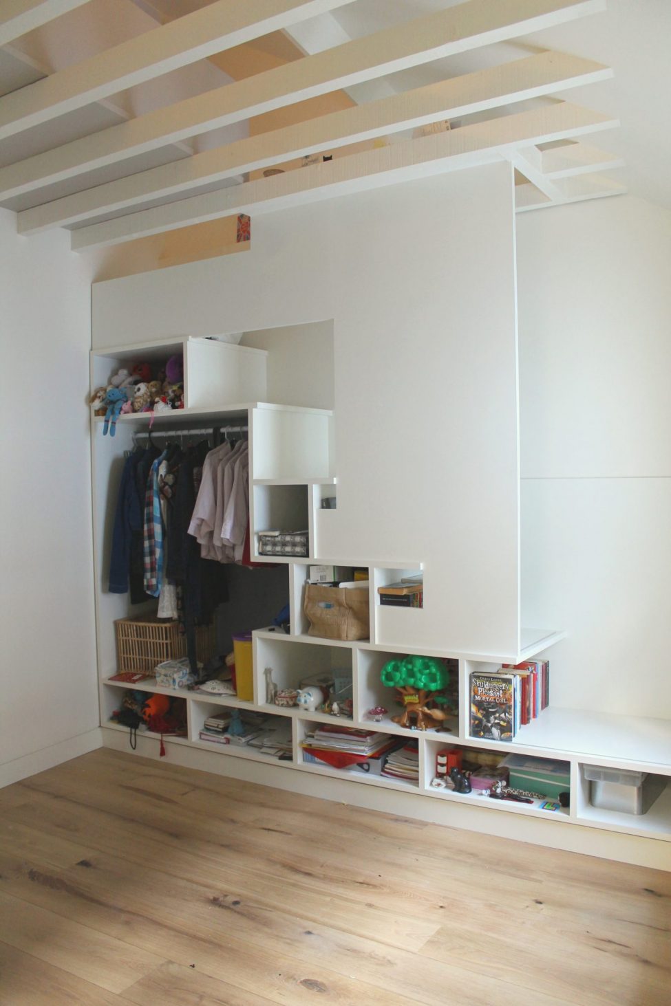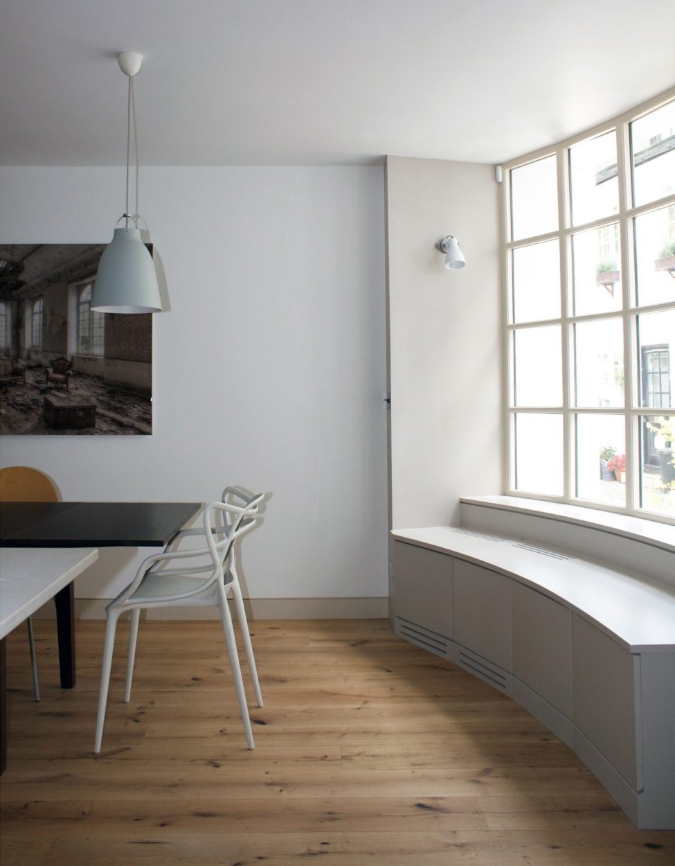 By opening up the originally unused loft spaces, not only was extra volume gained but also three mezzanines for three individual children’s bedrooms. Claiming the forgotten passage at the rear of the property, glazing it over and incorporating into the Living Room, extended the room and brought in the soft, gallery-like daylight within.