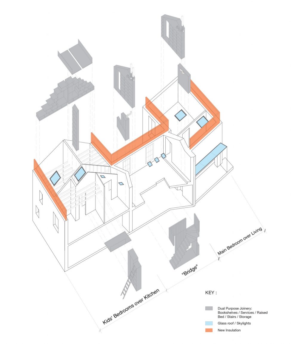 The Local Council refused to grant permission to extend to the previous architect, yet the client was desperate for new space. This meant we had to find and ‘eek out’ any possible space from within and effect only minimal changes to the exterior elevations. The Council approved these easily.