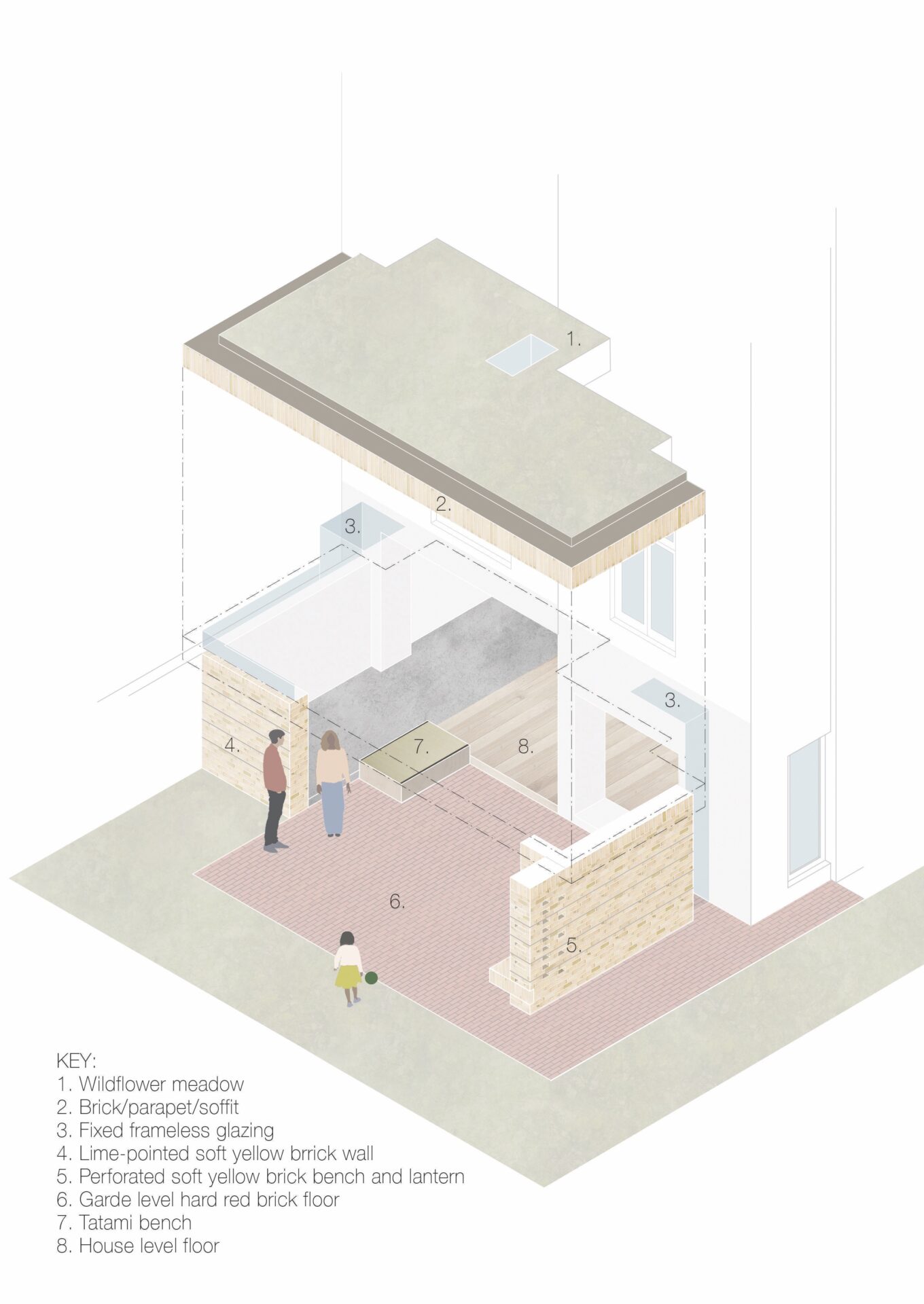 The last highlight of the extension is one that is a gift to both the occupants and the neighbours. The brick-made roof is embedded with a wildflower garden. This lovely and unexpected touch makes the “third wall” of the extension a unique tie to the garden.